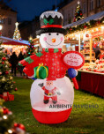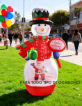 Muñeco de Nieve Inflable con Papá Noel y Efecto Nieve. Dale un toque mágico a tu decoración navideña con este muñeco de nieve inflable de 2 metros que incluye una esfera transparente con Papá Noel en su interior y efecto de nieve en movimiento. Fabricado en material resistente, este adorno combina luces, color y dinamismo, convirtiéndose en el centro de atención en cualquier espacio. Ideal para jardines, entradas, locales comerciales o eventos festivos.