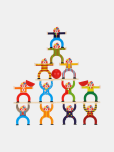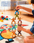 Juego de bloques apilables con divertidos personajes de payaso, ideal para que los niños se diviertan mientras desarrollan habilidades de equilibrio y coordinación. Las piezas permiten crear diferentes estructuras, estimulando la imaginación y el pensamiento lógico a través del juego.