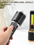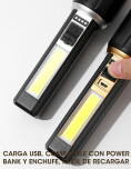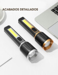 Linterna multifuncional, ideal para uso diario, emergencias y actividades al aire libre. Cuenta con 4 modos de luz, adaptable según la necesidad. Se carga con USB.
