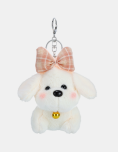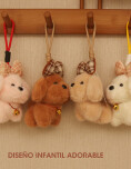 Llavero de peluche con moño y campanita decorativa en el cuello, diseño tierno y detallado que transmite calidez y simpatía. Su forma firme y expresión dulce lo hacen ideal como llavero o colgante para mochilas o carteras.
