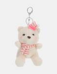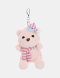 Llavero decorativo con diseño tierno. Osito de peluche con gorro de dormir y bufanda a rayas, diseño tierno y curativo que transmite una sensación de calma y dulzura. Ideal para usar como llavero o colgante en mochilas, carteras o cartucheras, aportando un toque adorable a los objetos cotidianos.