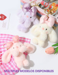 Llavero de conejo con diseño tierno y delicado, confeccionado en tela peluda y esponjosa, con relleno abundante que le da una textura suave y agradable al tacto. Un accesorio práctico y encantador que le da un toque tierno a tu bolso o mochila.