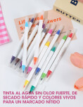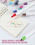 Set de marcadores con doble punta funcional: un extremo con color y otro extremo blanco especial para mezclar y cambiar el color, logrando efectos únicos en cada trazo. Ideal para estudio, dibujo y decoración.