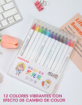 - Pack de 12 colores vibrantes con efecto transformable.