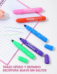Set de 18 marcadores de colores con presentación en envase portátil con diseño infantil. Ideales para dibujo. coloreado y escritura creativa. Su práctico envase con asa facilita el transporte y el guardado, perfecto para uso escolar y actividades creativas.