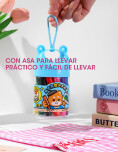 - Envase plástico con diseño infantil, atractivo y decorativo.