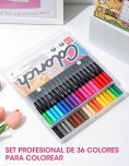 Set de 36 marcadores de doble punta, ideal para dibujar, colorear y resaltar con precisión.