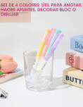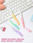 Set de marcadores borrables, ideal para estudiar, trabajar o tomar apuntes. Permite resaltar y corregir fácilmente, manteniendo los cuadernos prolijos y ordenados.