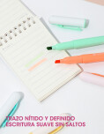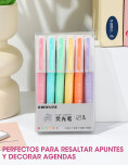 Set de resaltadores de 6 colores, ideales para subrayar, marcar y organizar información de manera clara y ordenada. Cuentan con tintas de colores suaves tipo pastel. Perfectos para estudio, oficina, planificación y uso diario.