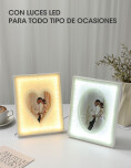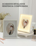 Resaltá tus recuerdos más especiales con este marco de fotos iluminado con luz LED integrada. Su diseño elegante con ventana en forma de corazón o óvalo y acabado brillante con detalles de brillo aporta un toque romántico y moderno a cualquier ambiente. Funciona con conexión USB, ideal para decorar dormitorios, livings o regalar en fechas especiales. La iluminación LED crea un efecto cálido y envolvente que realza tus fotos favoritas.