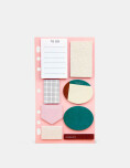 Set de 8 notas adhesivas. Cuenta con orificios para colocarlos en una carpeta o cuaderno.