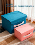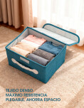 Organizador plegable con tapa y asa frontal, ideal para mantener todo ordenado y protegido por el polvo. Perfecto para guardar ropa, juguetes o artículos de uso diario.