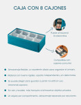 Organizador plegable con 8 compartimentos pequeños. Diseño práctico que permite separar y organizar cada elemento. Ideal para dormitorio u oficina.
