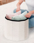 Organizador minimalista y funcional, ideal para guardar mantas o ropa y optimizar el espacio del hogar.