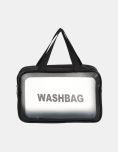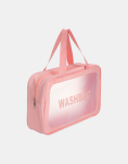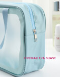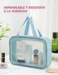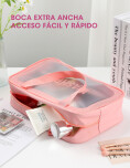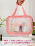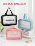 Portacosmetico transparente con manijas. Práctico y moderno neceser tipo washbag, ideal para llevar tus productos de higiene, maquillaje o cosmética de forma organizada. Diseñado con material resistente e impermeable, cuenta con un frente transparente que permite visualizar fácilmente el contenido. Su cierre seguro y manijas reforzadas lo hacen perfecto para viajes, gimnasio o uso diario.