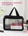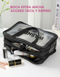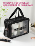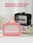 Portacosmetico transparente con manijas. Práctico y moderno neceser tipo washbag, ideal para llevar tus productos de higiene, maquillaje o cosmética de forma organizada. Diseñado con material resistente e impermeable, cuenta con un frente transparente que permite visualizar fácilmente el contenido.