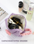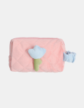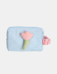Neceser con diseño suave y detalle de florcito. Super tierno, ideal para llevar cosméticos y cosas pequeñas. Liviano y fácil de llevar, perfecto para usar en la cartera.