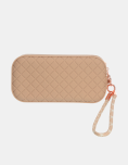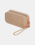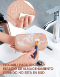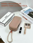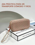 Portacosmetico de silicona suave con textura acolchada. Cuenta con correa de mano para llevarlo cómodamente. Compacto y liviano, fácil de guardar en la cartera y la mochila.