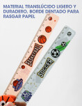 Regla con diseño divertido y funcional, ideal para medir, trazar líneas y acompañar el uso escolar diario. Su formato liviano y práctico la convierte en un accesorio esencial para estudiantes.