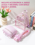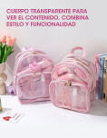 Set de belleza de 7 piezas, con diseño transparente tipo mochila que permite ver fácilmente el contenido en su interior. Cuenta con cierre suave y práctico, ideal para un uso cómodo y diario.Su diseño funcional combina estética y practicidad, perfecto para organizar accesorios personales y llevar todo de manera ordenada.