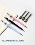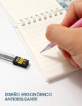 Portaminas con diseño simple y funcional. La punta de 0.5 mm ofrece un trazo fino y fluido al escribir, ideal para escritura diaria, apuntes y uso en oficina o estudio.