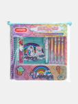 Set de librería con diseño colorido y práctico, ideal para uso diario en estudio o escuela. Todos los artículos vienen incluidos en un solo set, listo para usar y fácil de llevar.