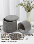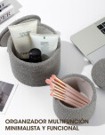 Set de 2 organizadores con tapa, de diseño minimalista y elegante. Su formato apilable permite ahorrar espacio y mantener el escritorio, tocador o mesa siempre ordenados. El interior suave protege los objetos guardados y aporta una experiencia de uso cómoda y delicada, ideal para el día a día.