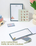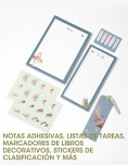 - Set completo: block de notas x2, marcadores adhesivos x5, marcapáginas x1 y stickers.