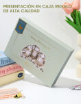 - Caja rígida tipo regalo, fácil de abrir y guardar.