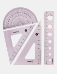 Set completo de instrumentos de geometría ideal para uso escolar o profesional. Incluye regla, escuadra, cartabón y transportador, todo en plástico transparente de alta resistencia. Su diseño preciso y duradero permite realizar mediciones y trazos con exactitud. Incluye: regla, escuadra, cartabón y transportador Material: plástico transparente resistente