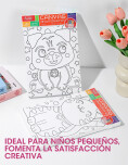 Set para colorear para que los niños se diviertan pintando y desarrollen su imaginación. Incluye un lienzo con ilustraciones de animales pre-dibujados y marcadores de colores vivos, listo para usar sin necesidad de materiales adicionales. Perfecto para actividades manuales en casa o en viajes.