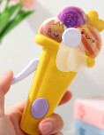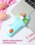 Ventilador manual con diseño de helado, colorido y divertido, ideal para niños y para quienes aman el estilo kawaii. Perfecto para llevar a la escuela, salir a pasear o usar al aire libre. - Funciona de manera manual (presionar y girar), sin pilas. - Aspas suaves y seguras. - Tamaño práctico, fácil de llevar en la cartera o la mochila.