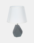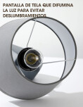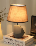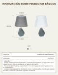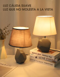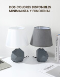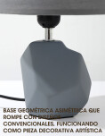 Velador de mesa con estilo moderno, diseñado para aportar una iluminación cálida y una estética a cualquier espacio. Su combinación de base geométrica y pantalla de tela crea un ambiente acogedor, ideal para dormitorios, livings o rincones de lectura. Funciona con enchufe.
