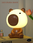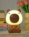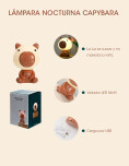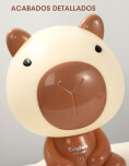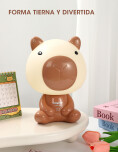 Velador LED con diseño de Capibara. La luz es suave y cálida, ideal para acompañarte mientras leés o trabajás. Se carga por USB.