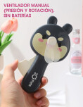 Ventilador manual con diseño de animales, tierno y divertido, ideal para refrescarte en los días de calor de forma práctica. - Funciona de manera manual (presionar y girar), sin pilas. - Aspas suaves y seguras. - Mango cómodo, fácil de agarrar. - Tamaño práctico, fácil de llevar en la cartera o la mochila.