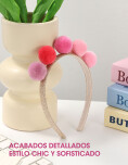 Vincha con Pompones de Colores Divertida y original, esta vincha combina un diseño con base dorada brillante y cinco pompones de colores vibrantes. Perfecta para darle un toque alegre y distintivo a cualquier look, tanto para uso diario como para ocasiones especiales.